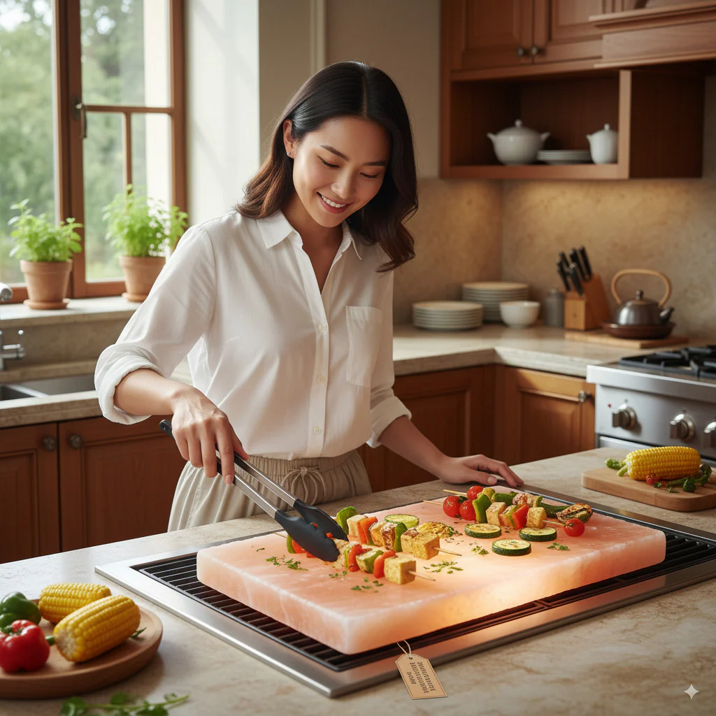 When heated for cooking, this massive salt surface infuses food with 84 trace minerals—creating flavor depth impossible with standard cooking methods. Proteins develop exceptional sears with mineral-enhanced caramelization. Vegetables gain unexpected complexity. Everything tastes more interesting without tasting "salty."